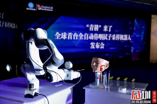 见圳客户端·深圳新闻网5月17日讯(记者 郭含笑 通讯员 罗医宣)5月17日,全球首台智能核酸采样机器人发布会在深圳罗湖举办,该机器人由深圳市罗湖医院集团、杭州湖西云百生科技有限公司共同研发,是全球首台全自动鼻咽拭子核酸采样机器人原型机。