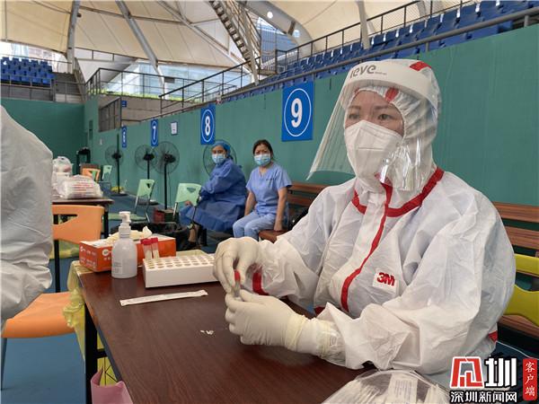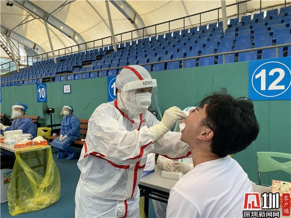“根据当前疫情防控工作要求,结合罗湖区实际情况,我们在28日启用去体育馆这个临时采样点,现场我们可以看到整个采样工作是很有秩序的,因为我们在每个时间段安排不同的人群进行采样,所以不会出现排队拥挤等情况。”罗湖区卫健局公共卫生和职业卫生科科长江正谈道,罗湖成立了一支拥有1200人的平战结合应急采样队,随时为疫情防控工作做好备战准备,一旦有需要,随时就可以投入战斗。“现在这个临时检测点每天的采样量大概在5000个左右,我们很有信心,能够打赢这场战‘疫’。”江正说。