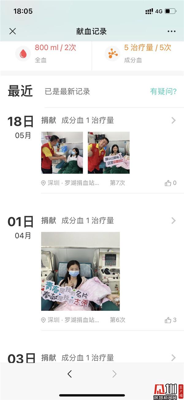 “工作之余有献血的习惯,最近的一次是4月1日和5月18日。”