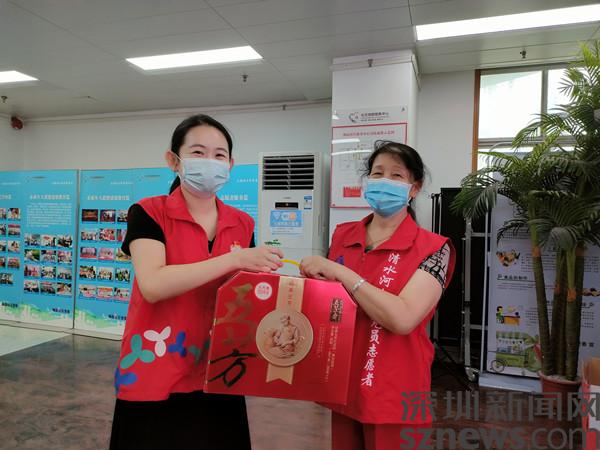 读特客户端·深圳新闻网2021年6月5日讯(记者 郭含笑 通讯员 陈秋珊)在端午节即将来临之际,为了给辖区支援清水河社康新冠疫苗接种的一批辛勤的志愿者过上一个欢乐祥和的节日,6月4日下午, 深圳市罗湖区清水河街道梅园社区党委、社区妇联在梅园社区党群服务中心二楼展厅开展“‘粽’情重‘义’志愿情 传递温暖在当下”慰问活动。为部分志愿者代表送上粽子并致以节日的问候和诚挚的祝福。
