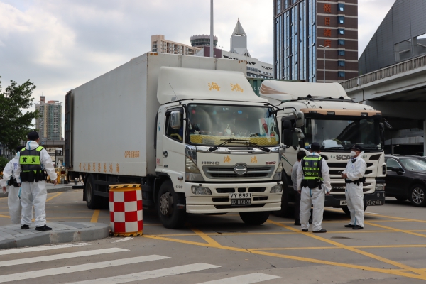 记者在现场看到,文锦渡口岸还开通了集检查、消杀、休息于一体的通关接驳点,在做好疫情防控的前提下,尽最大努力方便货车司机。
