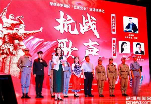 读特客户端·深圳新闻网2021年7月8日讯(记者 刘嘉敏 通讯员 李娴 刘婉怡 陈彦嘉)7月7日,是“七七事变”纪念日,是一个铭刻历史的日子,当天下午,阵阵“抗战歌声”从罗湖会堂传出,一场别开生面的党史学习教育专场活动在此举行。市委党史学习教育第二巡回指导组组长林苗,区领导吕漫妮、姚文胜、吴欢、罗安娜出席,区宣传文化系统党员干部,区直各单位、各街道分管领导,艺术家代表等参加活动。