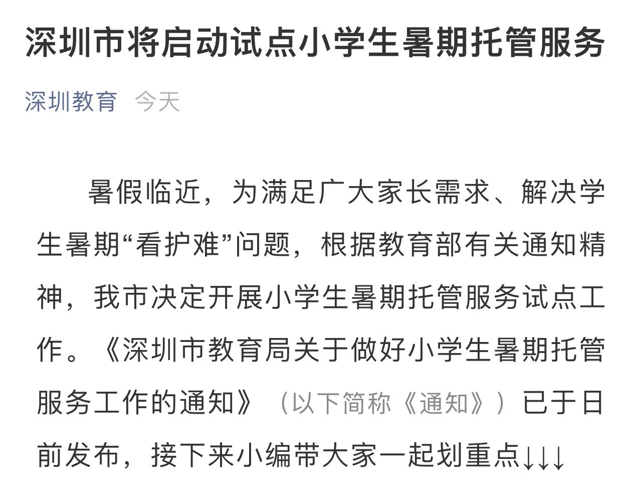 读特客户端·深圳新闻网2021年7月11日讯(记者 梁榆其)7月11日,记者从深圳市教育局获悉,《深圳市教育局关于做好小学生暑期托管服务工作的通知》(以下简称《通知》)已于日前发布,深圳决定开展小学生暑期托管服务试点工作。服务时段分为2期,原则上从7月19日到8月20日,以试点方式开展在全市10个区优选试点学校。
