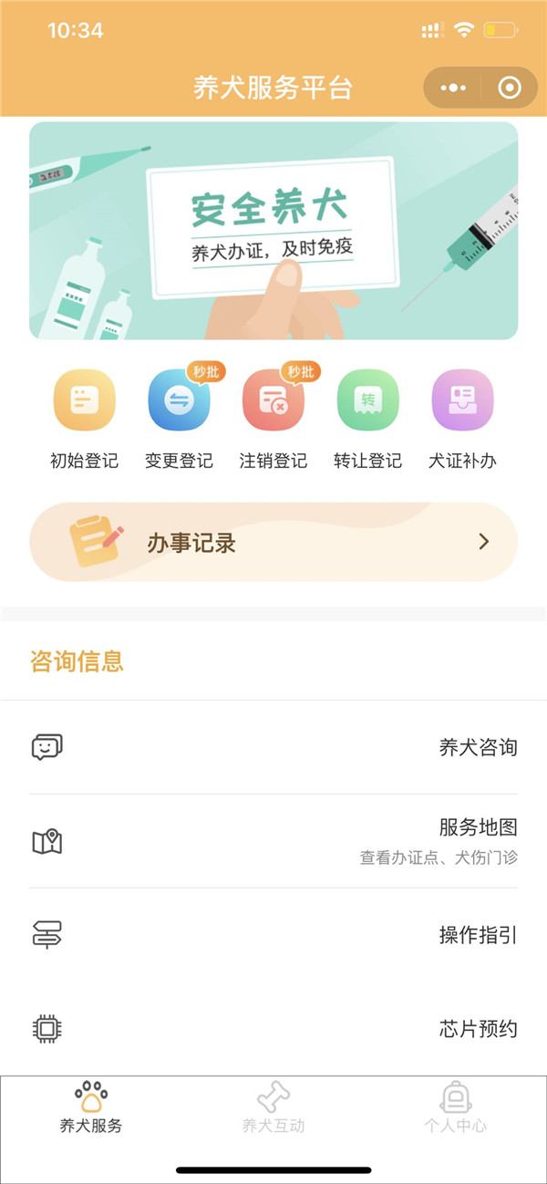 温馨提示:尚未办理养犬登记的市民朋友,可以登录“广东政务服务网”或通过微信搜索“深圳市养犬服务”小程序,足不出户便可在线办理养犬初始登记。养犬服务平台可根据实际需求申请办理初始、变更、注销等登记事项,还可进行芯片预约、通过地图查看养犬服务机构(办证点、犬伤门诊)地址及联系电话等。