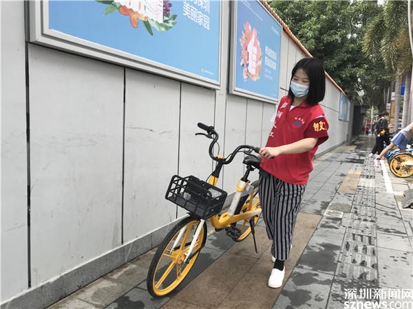 6岁的王子轩小朋友跟妈妈一起来的,他虽然年纪小,已经是资深志愿者了,经常参加社区活动。他的妈妈整理共享单车,他踮起脚尖,将《深圳市民文明手册》交给“骑士”,“骑士”看到小小志愿者鲜红的马甲,立刻自觉地将单车停放在指定的范围内。13岁的许梦涵小朋友第一次在社区做义工,她说,很累,但是很开心,“可以传播正能量”。