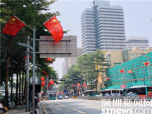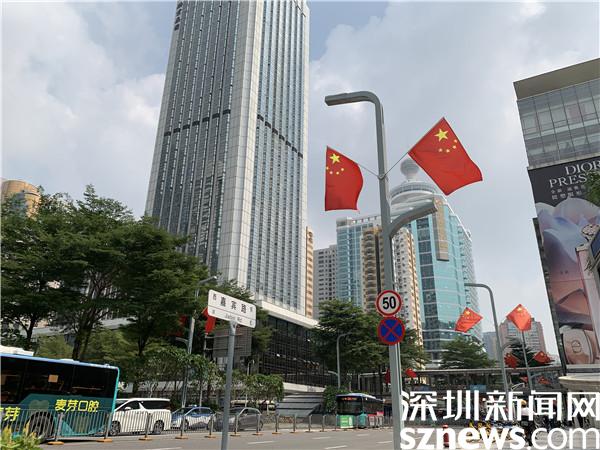 读特客户端·深圳新闻网2021年9月30日讯(记者 刘嘉敏 邱婕 见习记者 钟林)鲜艳的五星红旗迎风招展,公园里、大街上、商场里……国庆来临之际,为庆祝中华人民共和国成立72周年,罗湖区处处洋溢着幸福的“中国红”,人们感受着浓浓的爱国氛围。大街小巷,红旗飘展,花团锦簇,这边红旗高扬,那边花儿争艳,参杂成一片热闹祥和的“中国红”。青山绿水间,洪湖翠竹畔,呈现片片罗湖“生态绿”,让人流连。看万象罗湖,片片“中国红”和“生态绿”交织相融,共同绘就国庆佳节繁荣景象。