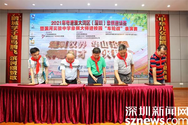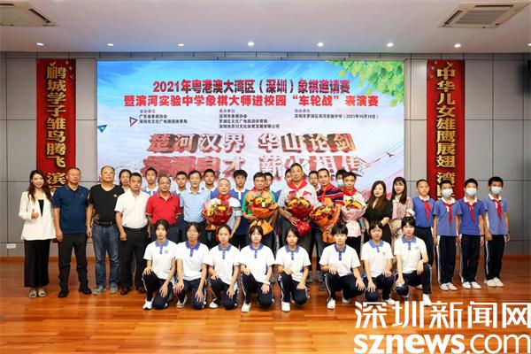 读特客户端•深圳新闻网2021年10月10日讯(见习记者 钟林 通讯员 凌玲)10月10日上午,罗湖滨河实验中学内“狼烟四起”,一片激烈景象,原来,是吕钦、蒋全胜、柳大华、庄玉庭和曹岩磊5位象棋大师齐聚校园,和55名学校师生共同开展2021年粤港澳大湾区(深圳)象棋邀请赛暨滨河实验中学象棋大师进校园“车轮战”表演赛。