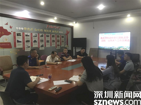 读特客户端·深圳新闻网2021年10月13日讯(记者 彭桂红)在今年第18号台风“圆规”到来之际,为应对台风可能带来的风、雨影响,做好极端天气各项安全防范工作,12日上午,清水河街道党工委书记魏刚紧急召开清水河街道防御台风“圆规”推进会,会后,清水河街道综合行政执法办立即组织本部门相关人员召开台风“圆规”防御工作部署会,对辖区在建工地、小散工程、户外广告安全排查等相关工作进行紧急部署。