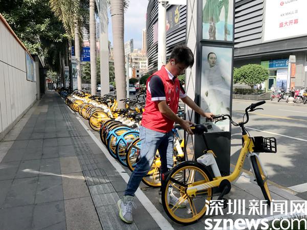 小分队另一位成员叫何天欢,一位20岁的小伙子。他每天下班后或者上班前,会在单位门前的共享单车停放点执勤,已经从国庆假期坚持到现在。每天穿着红马甲,把共享单车摆放整齐,对他来说,也是一件开心的事情,让他觉得自己这一天过得有意义。