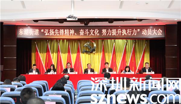 读特客户端·深圳新闻网2021年11月19日讯(记者 郭含笑 通讯员 黄贻凯)感恩奋进跟党走,紧锣密鼓再出发。罗湖区第八次党代会、区“两会”的顺利闭幕是一个结束,也是罗湖新征程、新使命、新奋斗的开始。为弘扬罗湖光荣传统、赓续罗湖血脉传承,在街道全体党员干部中形成憋足一口气赶超奔跑、铆足一股劲狠抓落实的风气,把先锋精神、奋斗文化转化为强大执行力、践行在奋斗新征程,11月19日下午,深圳市罗湖区东湖街道召开“弘扬先锋精神、奋斗文化 努力提升执行力”动员大会。街道党工委书记程时菊等处级干部,各办、中心全体在编人员,各社区党委书记、副书记、副站长、城管专干共100余人参加会议。