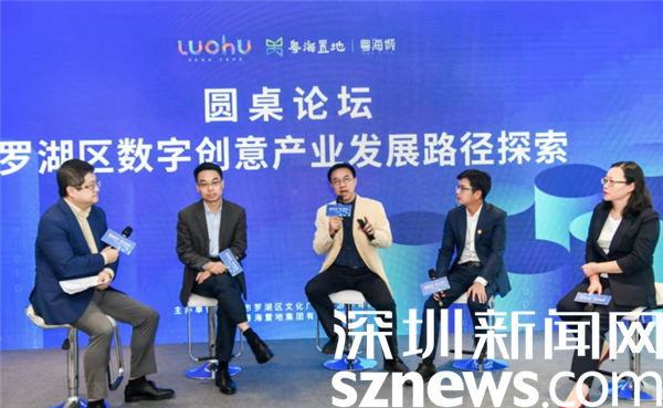 活动最后,深圳市文体局文化产业处处长熊德昌、罗湖区文体局文产办负责人周海涛、深职院数字创意学院院长王效杰、深圳市宝视达广告控股有限公司董事长李志光、戴德梁行华南区项目及企业部董事杨薇等5位嘉宾,以“罗湖区数字创意产业发展路径探索”为主题展开了精彩的探讨交流,从多个角度对罗湖区产业政策制定、数字创意产业聚焦方向以及对未来与香港联动的合作展望分享了各自的独特见解。
