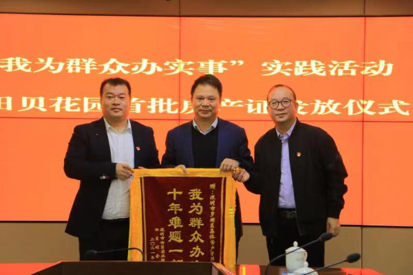 仪式当天,5名村民代表从罗湖区领导的手中接过了房产证,田贝股份合作公司向有关单位赠送锦旗表示感谢。