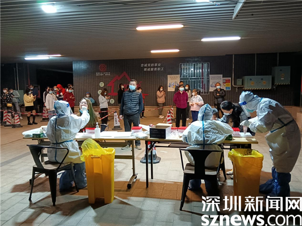 读特客户端·深圳新闻网2022年1月18日讯(记者 刘嘉敏 通讯员 杨纪欧)“放码过来!”1月16日晚8点,在罗湖区桂园街道老围花园五楼架空层的临时检测点,志愿者陈东红在录入区扫码,十人一组,一一扫过、上传,引导去采样台。忙碌中,他还不忘调侃,一句“放‘码’过来!”既是幽默,也是宣战,是对疫情的宣战,是必胜的信念。现场排队的居民会心一笑,气氛立刻轻松起来。这一天,陈东红早上9点就上岗了,一直在禧程酒店临时检测点忙碌,晚上又转战在老围花园五楼架空层的临时检测点。