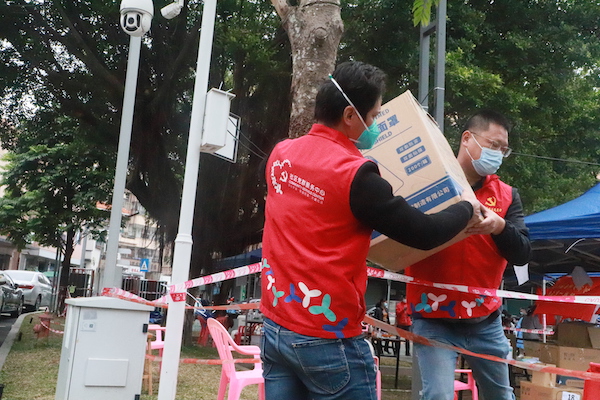 随后,文促会一行来到了东湖街道大望社区。在社区核酸检测现场,大望社区党委书记高桂秀正在指挥现场工作;大望实业公司董事长何雨聪和大望社区副书记李雪康两人都面带倦容,明显近期睡眠严重不足。据了解,高桂秀近期一直绑着护腰垫片,带病坚持抗疫。