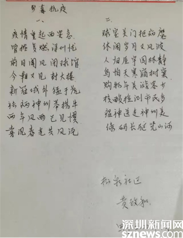 读特客户端·深圳新闻网2022年3月4日讯(记者 吴艳 通讯员 黄小兰 蔡欢)诗歌来助力,同心齐抗疫。为了给这次疫情奋战一线的所有工作人员、志愿者加油助力,3月2日上午,深圳市罗湖区东晓街道老年协会以“抗击疫情 为爱发声”为主题,在老年协会微信群线上开展诗歌朗诵活动,活动共吸引十多名长者参与。