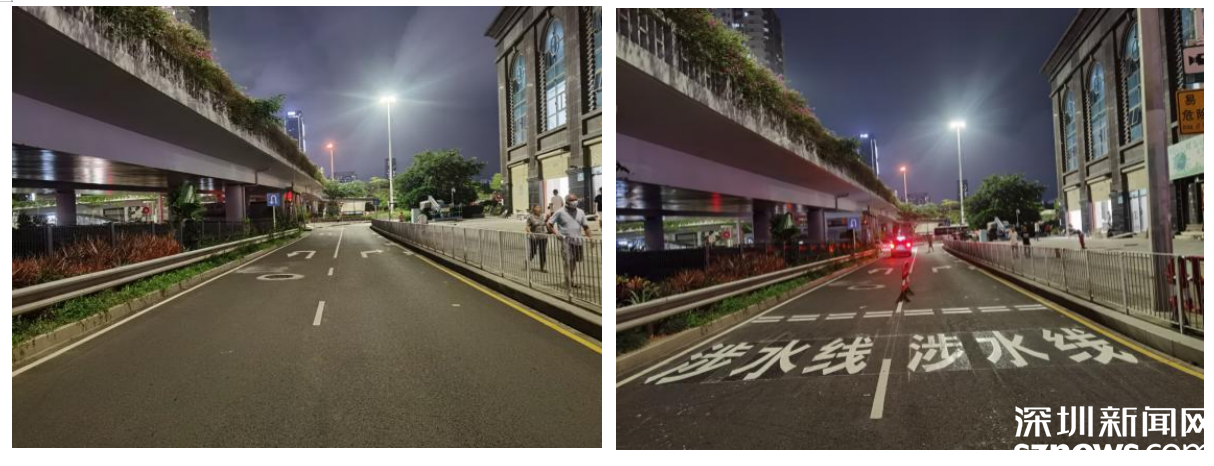 深南东路东行人民桥下涉水线施工前后对比