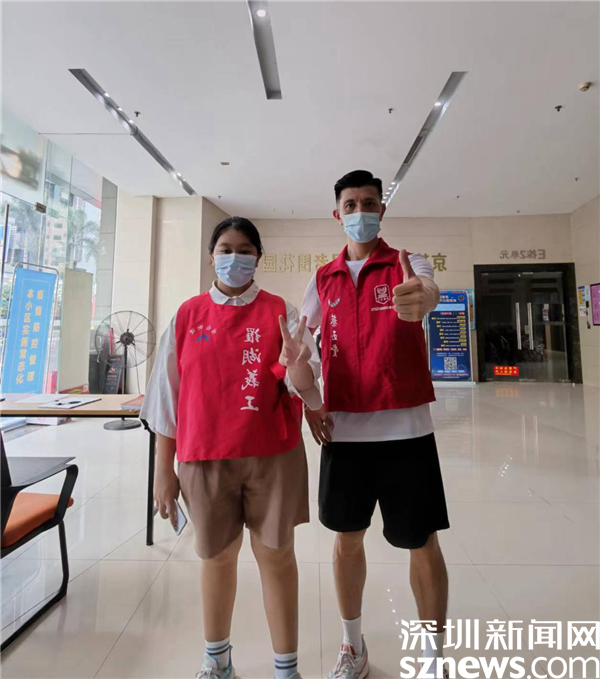 在老围社区防疫一线,除了表兄弟,还有一对亲姐妹,她们是陈嘉琪和陈嘉盈。两姐妹相差2岁,一个上高中一个上初中。她们曾经一起参加过老围社区的文明城市创建活动,助力深圳创建文明城市,还利用周末时间清洁社区漂流书屋、整理书屋里的书籍。现在,姐妹俩又双双在小区卡口执勤,为社区防疫贡献力量。