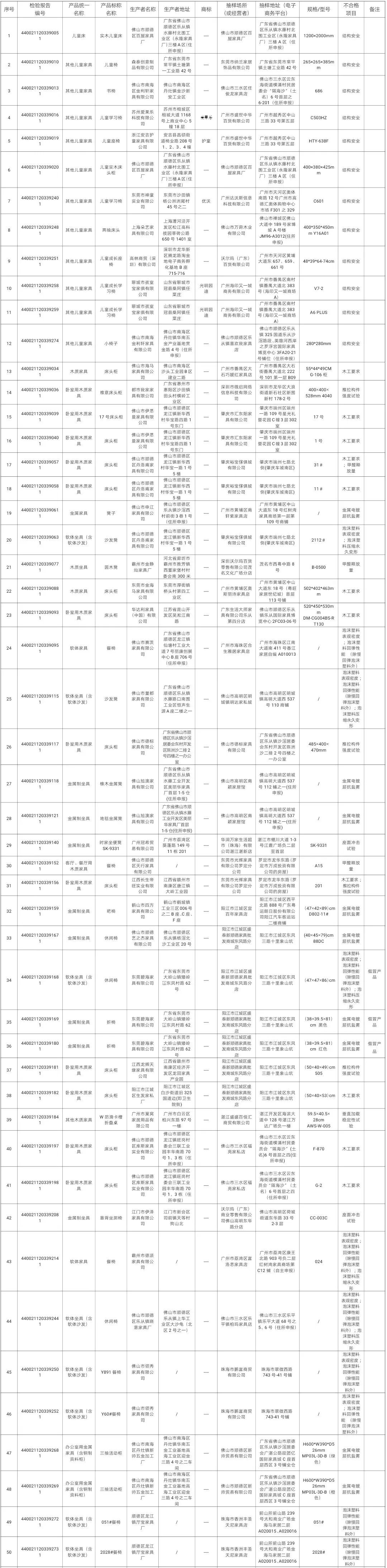 ●9月26日,记者从广东省市场监管局获悉,此次共对346家企业生产的575款家具产品(含儿童玩具)进行抽查,发现134款产品不合格。不合格产品名单如下 ↓
