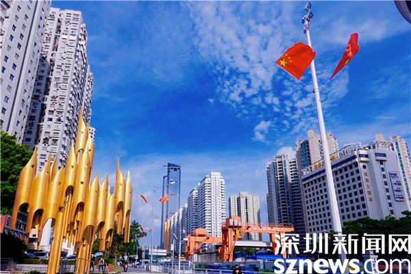 读特客户端·深圳新闻网2022年10月1日讯(记者 刘嘉敏)国庆假期第一天,行走在罗湖区的大街小巷,处处洋溢着喜庆的浓厚氛围。一面面鲜红的国旗悬挂在城区主次干道,在蓝天白云的衬托下,鲜艳的“中国红”迎风飘扬,成为城区一道最靓丽的风景线。深圳新闻网记者带着镜头走进罗湖,将这一幕幕迎风飘扬的“红色”定格。