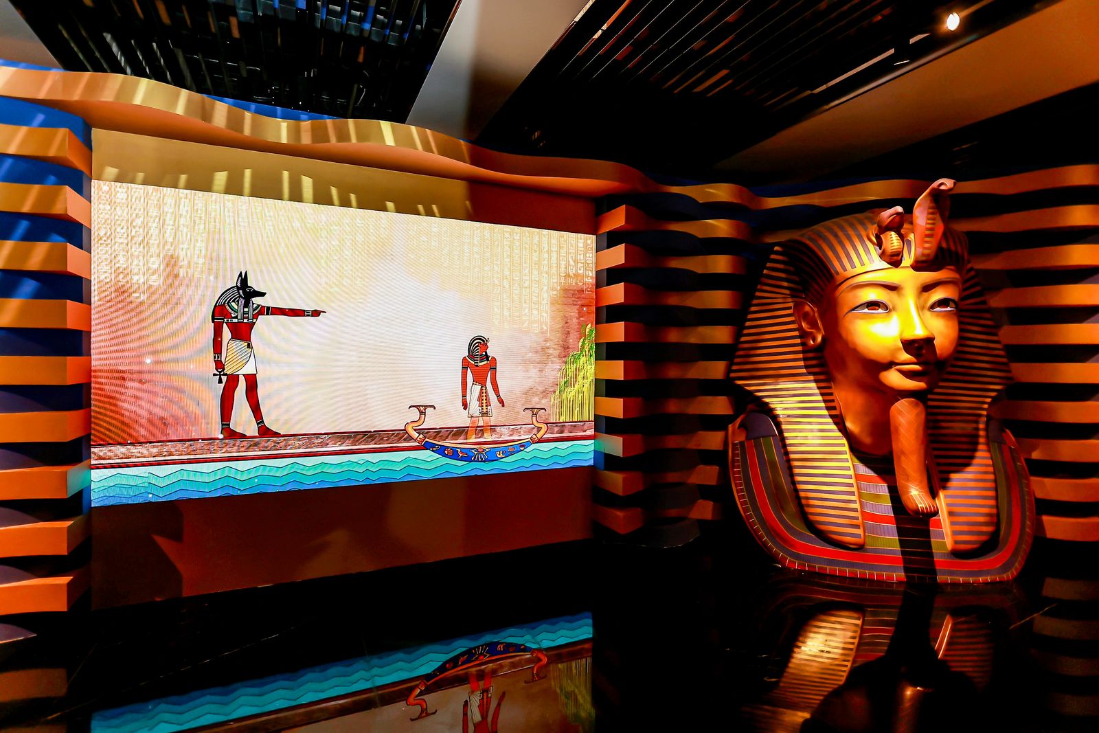 展览以考古发现为切入点,通过沉浸式多媒体技术,讲述从生命的起源,到法老昔日的辉煌,再到死后开启伟大而又神秘的灵魂之旅的恢宏故事,为观众呈现出一场绚丽多彩的古埃及文明秀。