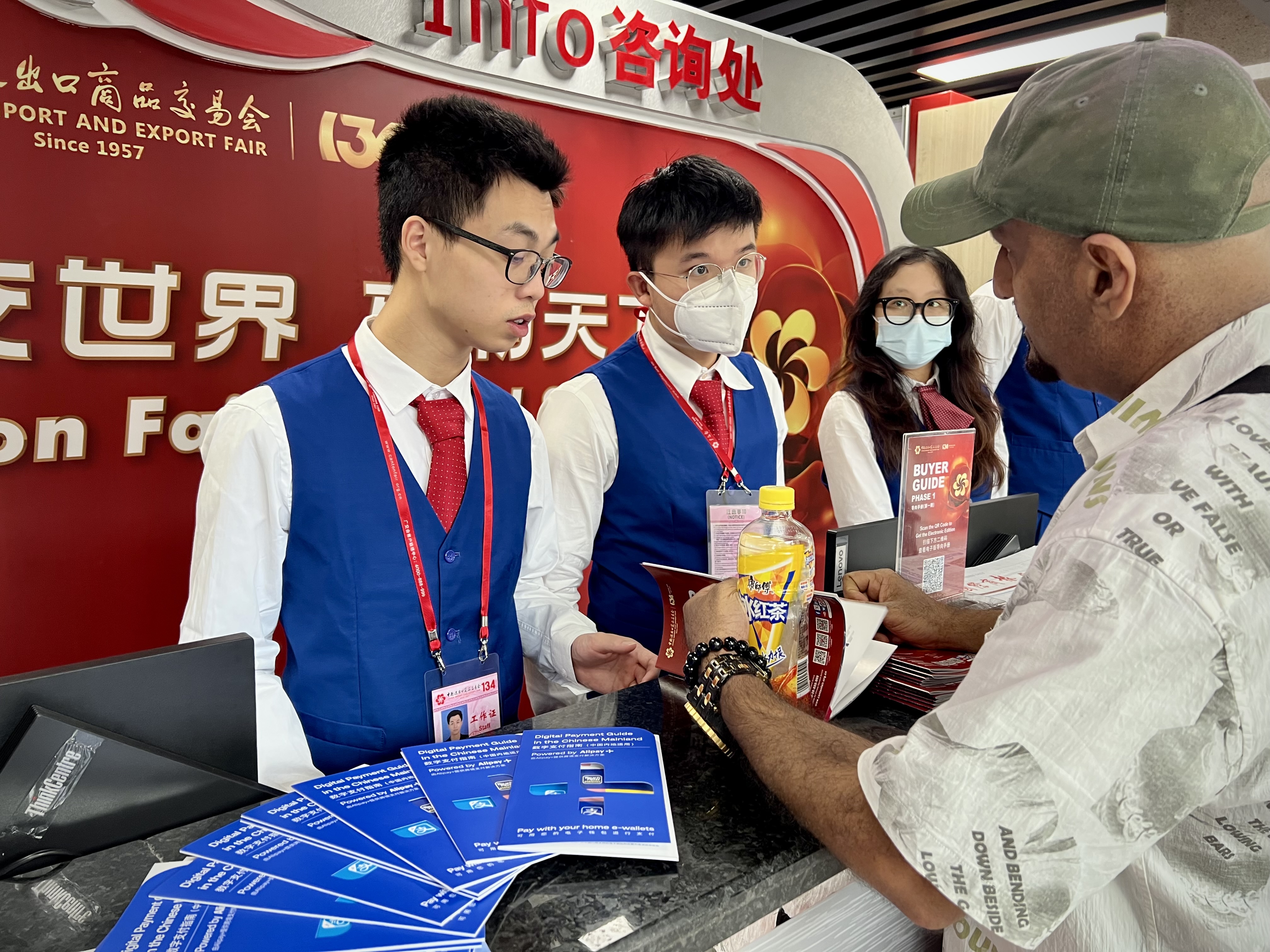 广交会咨询台上都摆满了Alipay+服务的双语说明书,方便境外宾客了解。