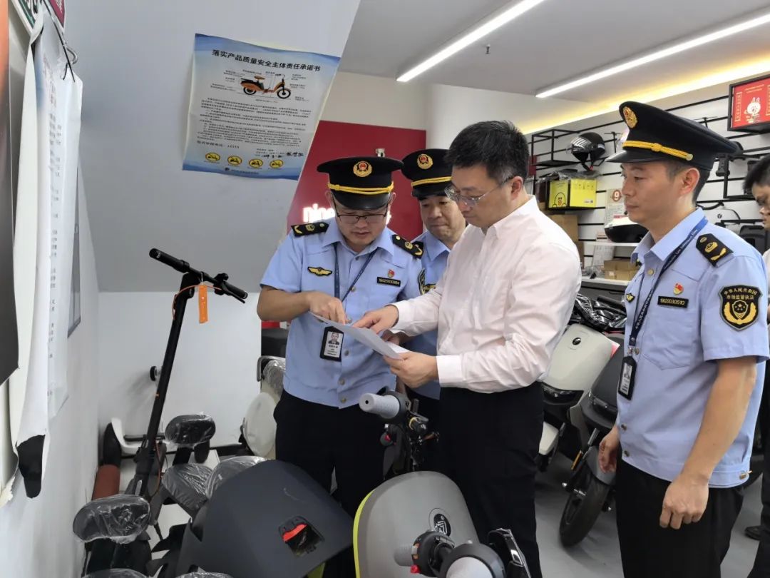 督导组一行以“四不两直”的方式现场检查督导电动自行车安全隐患全链条整治行动开展情况。首先来到福田区福保街道新港社区电动自行车销售门店检查产品质量和电动自行车加装改装情况,仔细查看电动自行车CCC认证标识及蓄电池安全存放和反射器、防碰擦等装置,对待售电动自行车现场快检,对现场检查发现的问题马上督促整改,对涉嫌不符合强制性标准的电动自行车予以扣押,并对当事人立案调查。同时,督导组现场调研了解辖区局、监管所等市场监管部门的履职情况,要求认真履行责任。