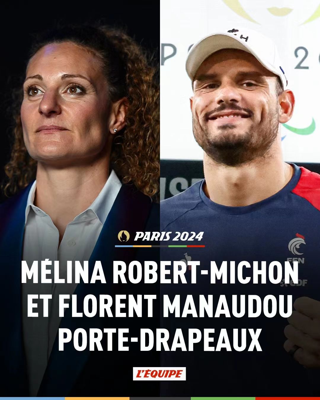 东道主法国早早公布了开幕式旗手人选,两位旗手分别是34岁的游泳运动员弗洛伦特·马纳多和45岁的铁饼运动员梅琳娜·罗伯特·米琼。