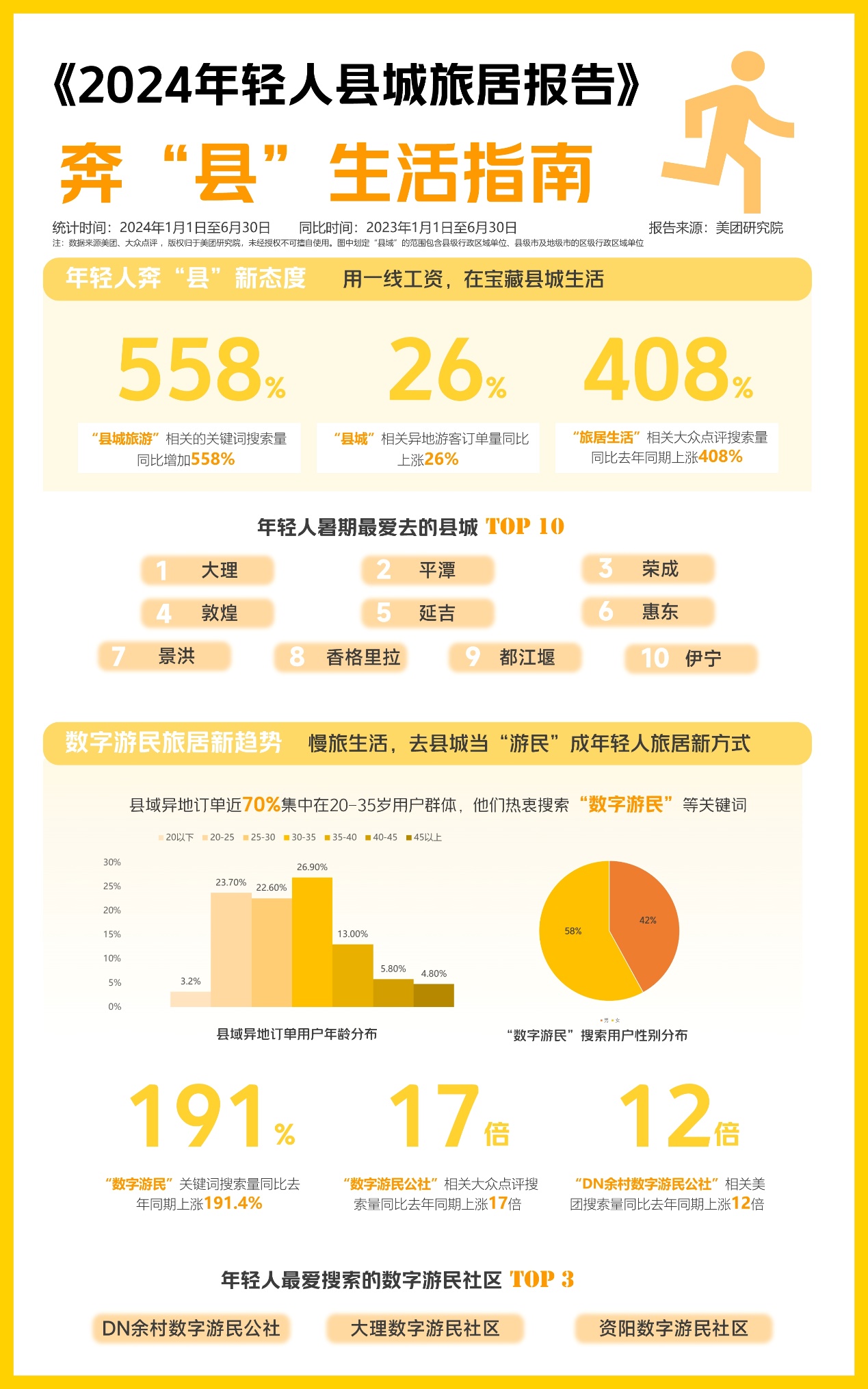 年轻人奔“县”指南。(图源:美团研究院《2024年轻人县城旅居报告》)