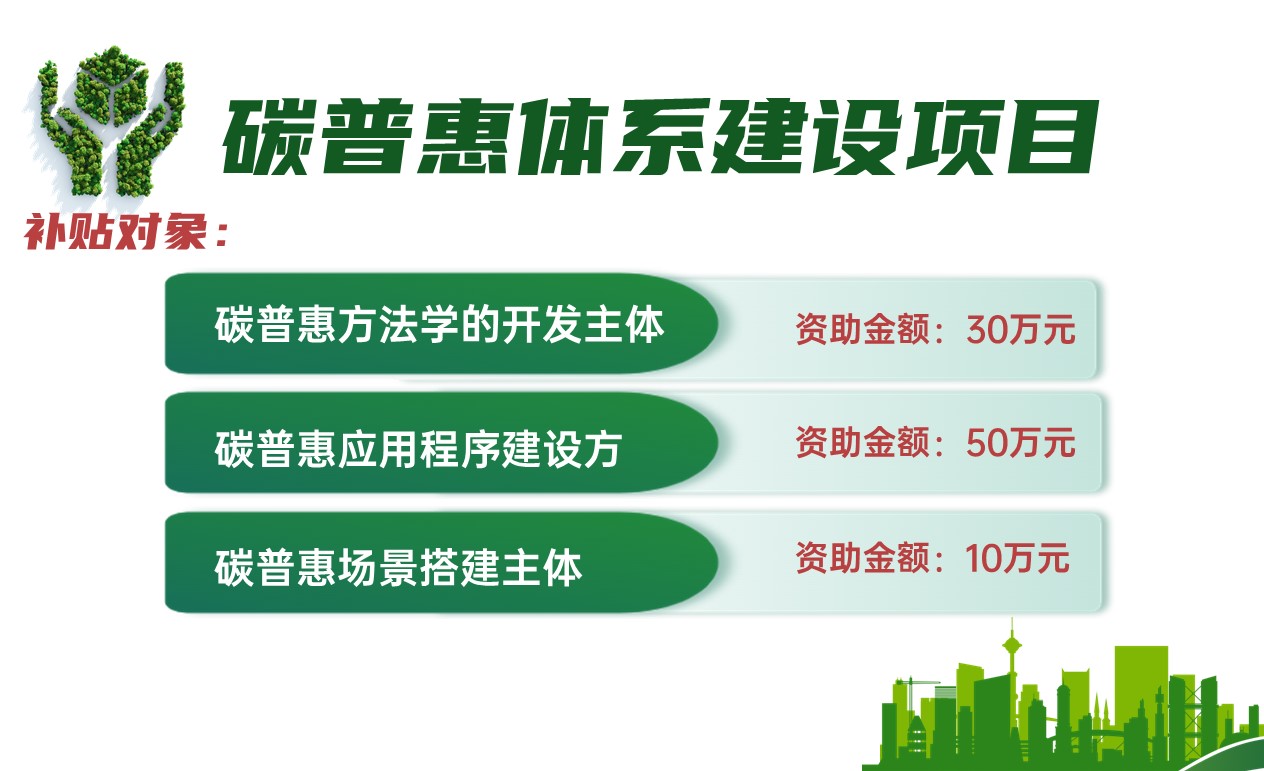 其中气候投融资发展项目、碳排放权融资业务项目着眼于为部分企业减轻融资成本负担,将会按照融资成本或实际支付利息的50%予以资助。对碳金融、碳账户创新推广应用项目新增业务达到一定规模的给予一次性50万元的资助。