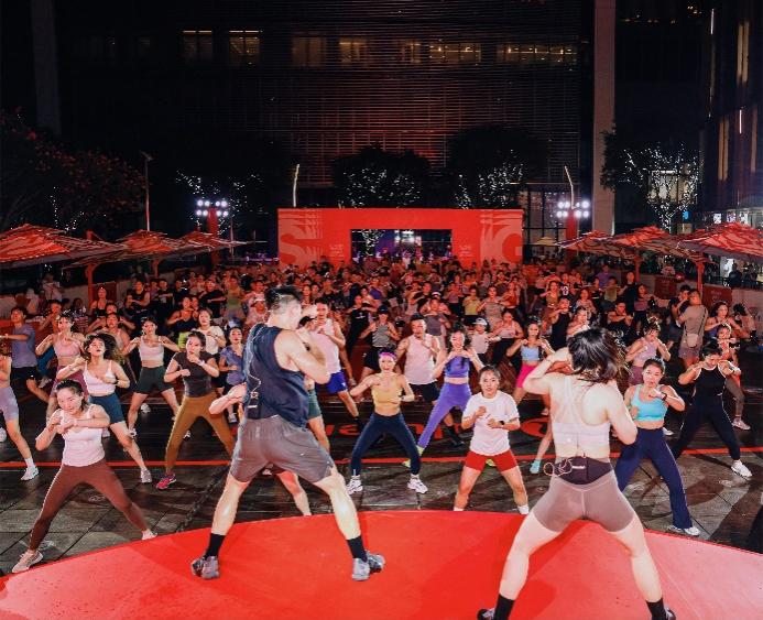 当日,刘逸云Amber Liu和李铢衔James以一袭充满夏日活力的热汗装备惊喜现身,瞬间点燃现场气氛。两位共同为冠、亚、季军三支队伍颁发奖牌,并组队与冠军团队开展了一场酣畅淋漓的友谊赛。月色之下,刘逸云Amber Liu、李铢衔James与特邀大使共同领衔有氧搏击,百余名客人在全力出拳中释放能量,享受运动带来的好状态。