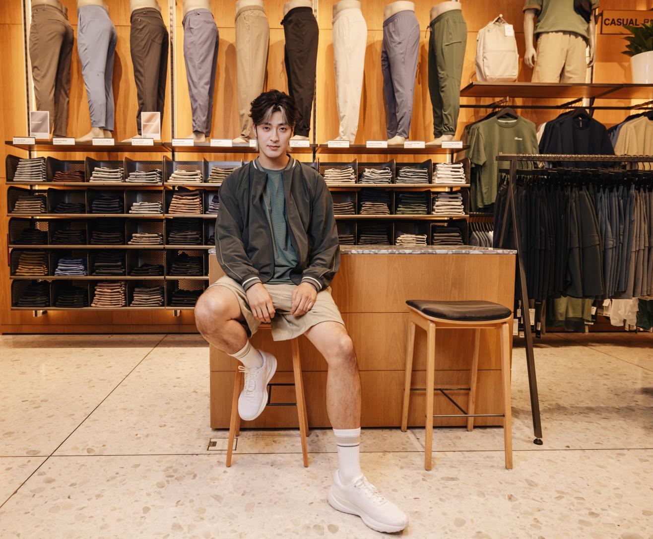 李铢衔James身着Relaxed-Fit 训练飞行员夹克搭配Relaxed-Fit训练网面短裤亮相。