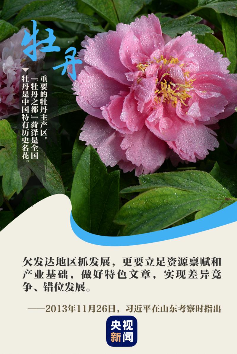 2013年11月26日,在山东菏泽考察时,习近平走进尧舜牡丹产业园,了解牡丹开发情况,“一个地方的发展,关键在于找准路子、突出特色”。他指出,菏泽农业优势不能丢,要继续巩固加强。