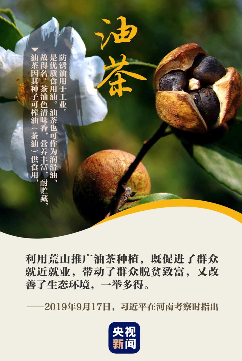 2019年9月17日,习近平来到光山县司马光油茶园,同正在劳作的村民和管理人员交流,实地察看油茶树种植和挂果情况,询问乡亲们家庭、务工和收入情况。