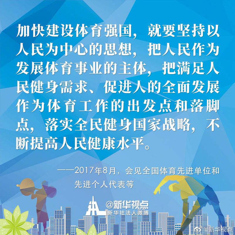 今年8月8日是我国第12个“全民健身日”。党的十八大以来,以习近平同志为核心的党中央高度重视关心体育工作,谋划、推动体育事业改革发展,将全民健身上升为国家战略,推动全民健身和全民健康深度融合。今天,一起来重温习近平总书记关于推进全民健身、体育强国事业的金句。