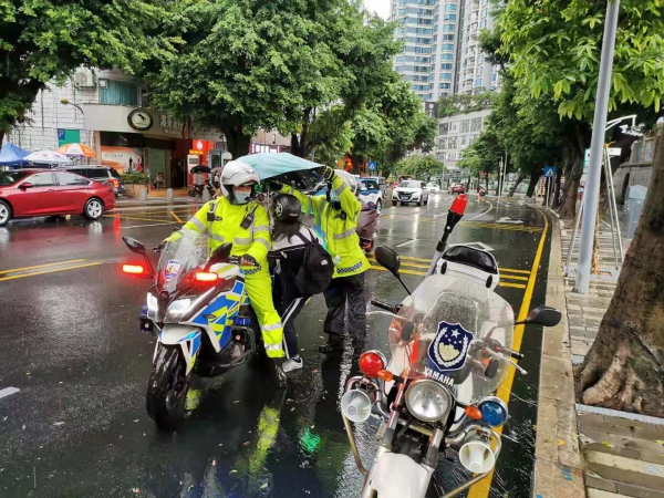 6月28日一早,一名学生慌慌张张向罗湖执勤交警求助,原来,一名一中考考生赴考,由于记错考点,到了入场时才发现走错考点,急需前往罗湖中学考点。正在文锦中学进行中考保障的罗湖东门交警林嘉骏、陈左阳了解情况后,当机立断,一方面立即为考生带上头盔并护送学生前往罗湖中学,另一方面,及时将情况通报至沿途各路口的执勤警力。铁骑争分夺秒,为考生赴考赢取宝贵的时间,仅仅用了2分钟,在考试截止入场前,将考生顺利安全送到罗湖中学考点。