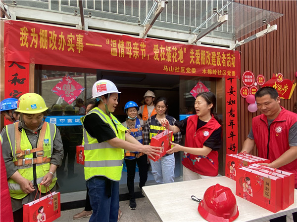 在罗湖“二线插花地”棚户改造项目现场,40余名坚守岗位的女工收到“母亲节”慰问和关怀。