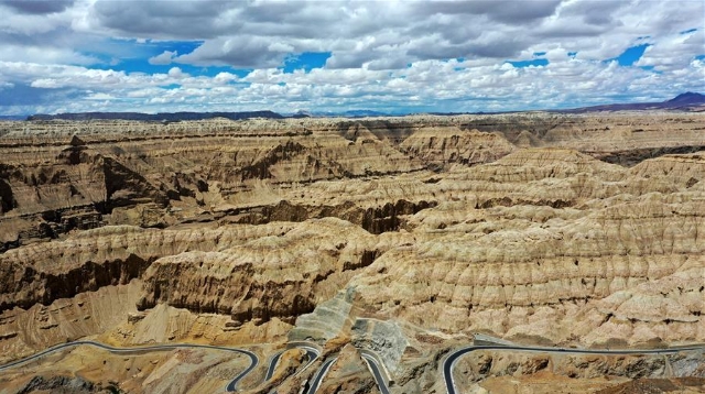 札达土林位于西藏阿里地区札达县境内,千姿百态的土林与蓝天、白云相互映衬,景色壮美。