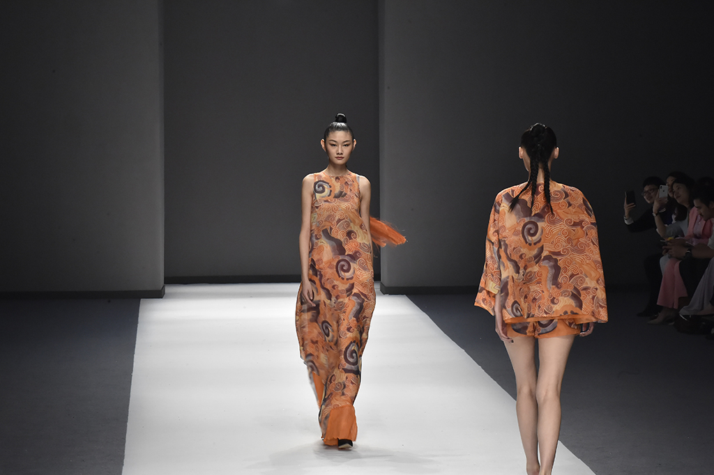 模特正在展示品牌Sunshine见花开的服装服装带有东方美感