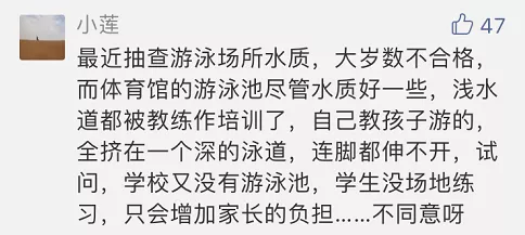 那么关于家长们对于学校开游泳课的呼吁,
