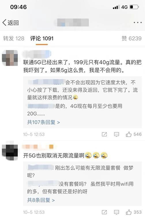 5G开启预约后,网友也议论纷纷。有网友称:听说联通5G已经出来了,199元只有40GB流量,真的把我吓到了,如果5G这么贵,我是不会用的。