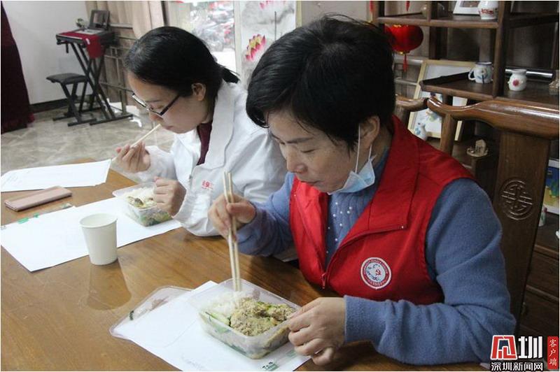 中午12点,吴丽回到社区工作站用餐。