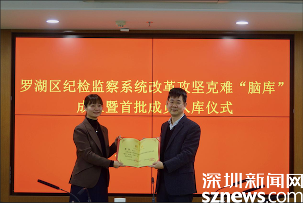 读特客户端·深圳新闻网2022年2月12日讯(记者 吴艳 通讯员 曾林 陈心彤)近日,罗湖区纪委监委召开区纪检监察系统改革攻坚克难“脑库”成立(以下简称“脑库”)暨首批成员入库仪式,22名纪检监察干部入选首批“脑库”成员。区委常委、区纪委书记、区监委主任姚文胜向成员代表颁发聘书并作讲话。