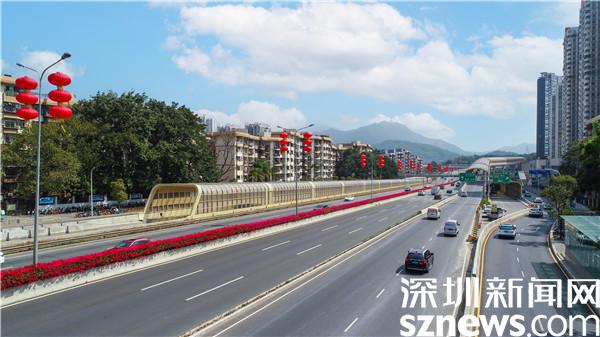读特客户端·深圳新闻网2022年2月17日讯(记者 李慧 通讯员 李世成)春节期间,怒放的簕杜鹃像一条红色的“飘带”镶嵌在布心路-泥岗路道路中间,纵贯蜿蜒,市民行车穿梭之际,目之所及繁花似锦,美不胜收。