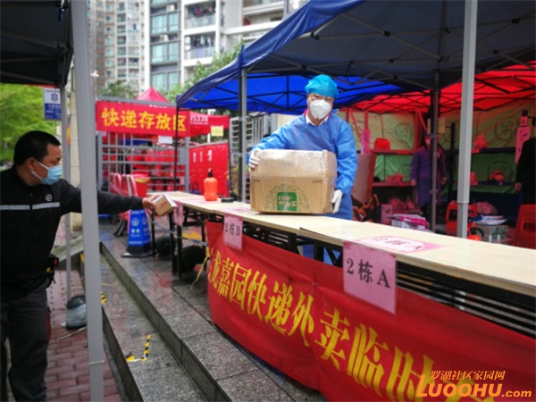 随着快递和线上订菜数量增多,为了避免居民取快递聚集以及与快递员频繁接触,宝龙管理嘉园管理处决定在小区正门设立快递外卖临时存放点,根据楼栋、物品类型等进行分类,实行“无接触”配送。存放点麻雀虽小,但五脏俱全:分别设有快递消毒分拣区、邮寄快递消毒交接区、消毒分类中转区、快递存放区、外卖(生鲜蔬菜快餐)存放区。
