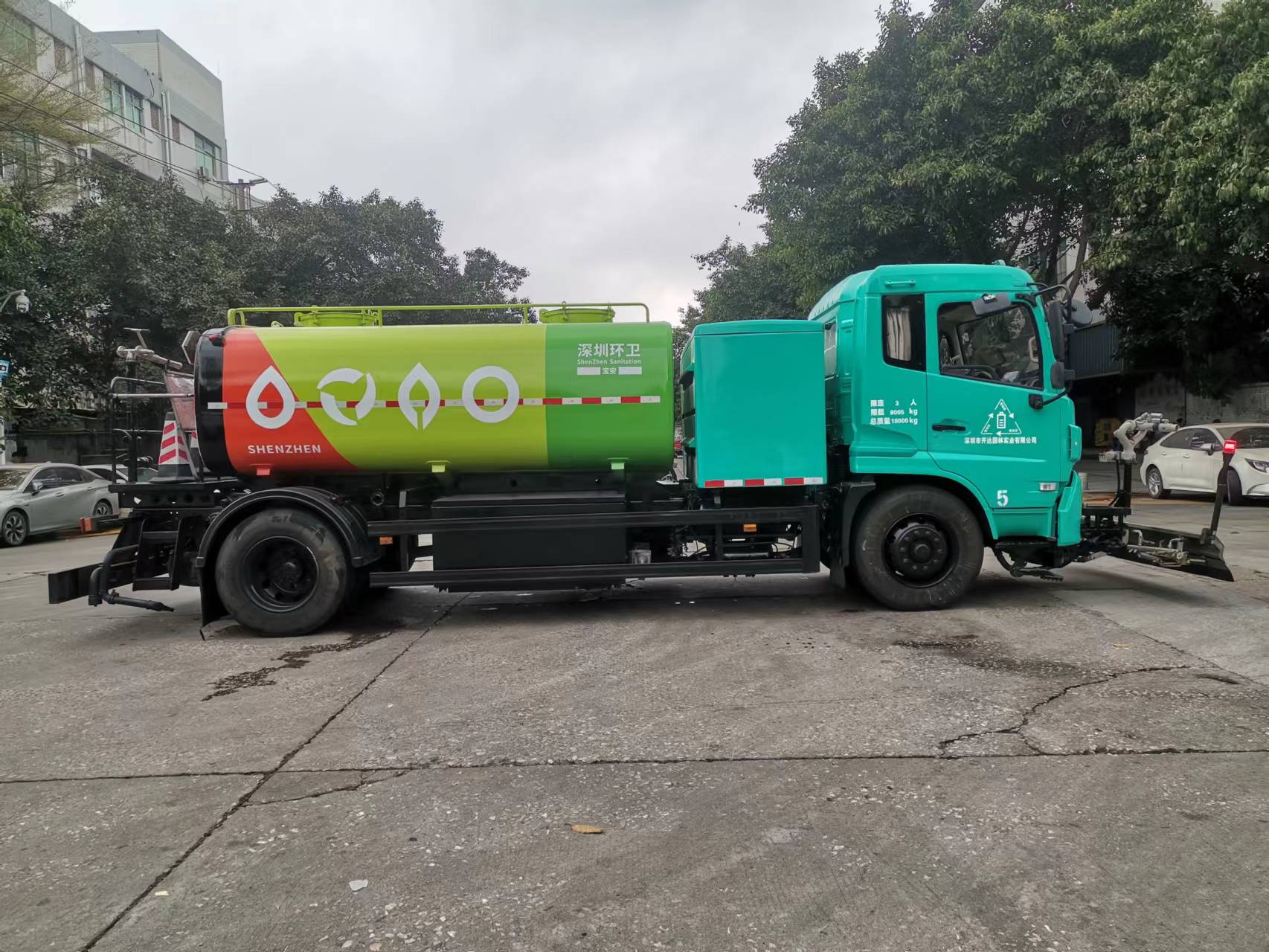 (宝安区环卫洒水车的车体上有"深圳环卫"字样等明显识别标识)