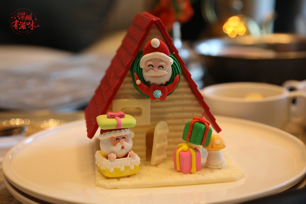 The red strawberry chocolate and white chocolate house, and the sugar frosting ornaments: Christmas tree, snowman, gifts, bricks, tiles, bell, and Christmas elves… a sense of New Year's atmosphere came out. Chef Wang Zhaohua (Head Pastry Chef at Hilton Shenzhen Futian) taught Alisa the secret of melting chocolate: the temperature of the chocolate should be controlled between 20 to 30 degrees Celsius. When melting over boiling water, we could observe the smooth texture and gloss of the chocolate by lifting the chocolate syrup with a spoon.