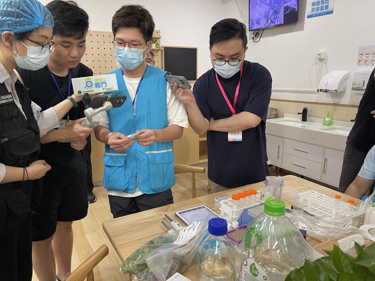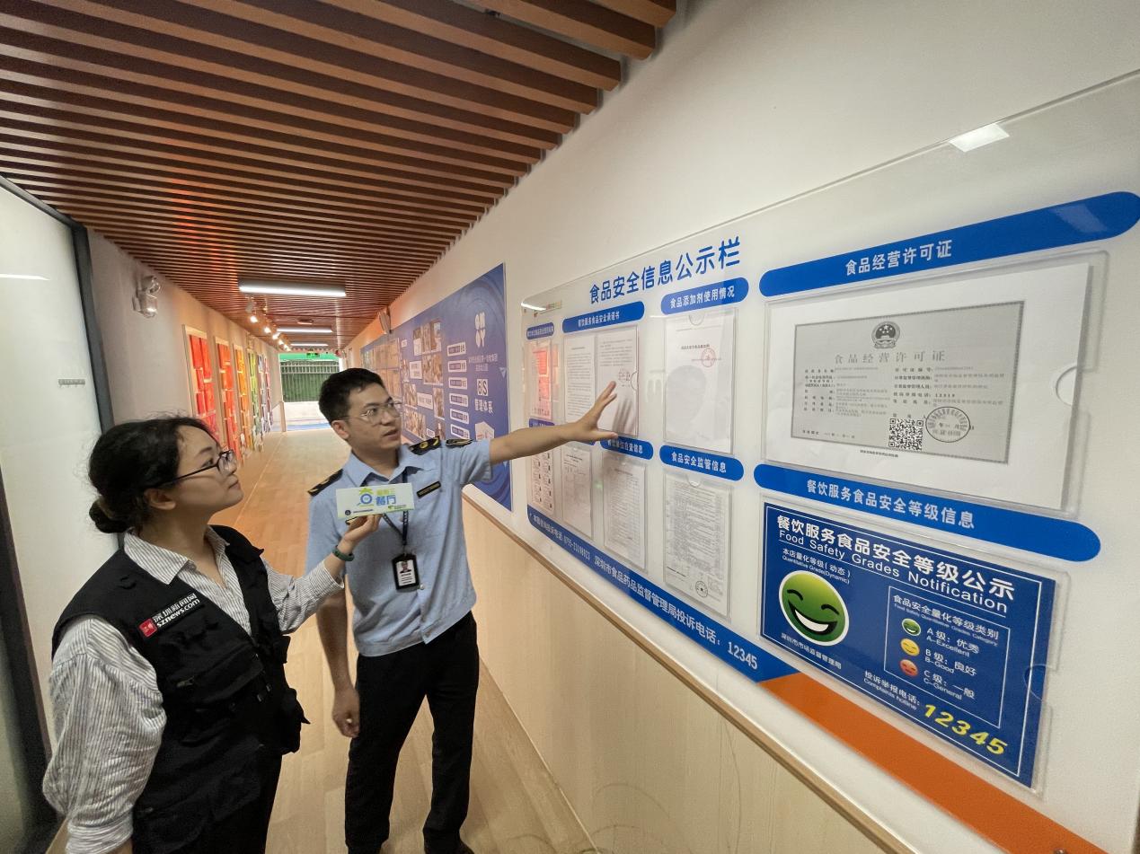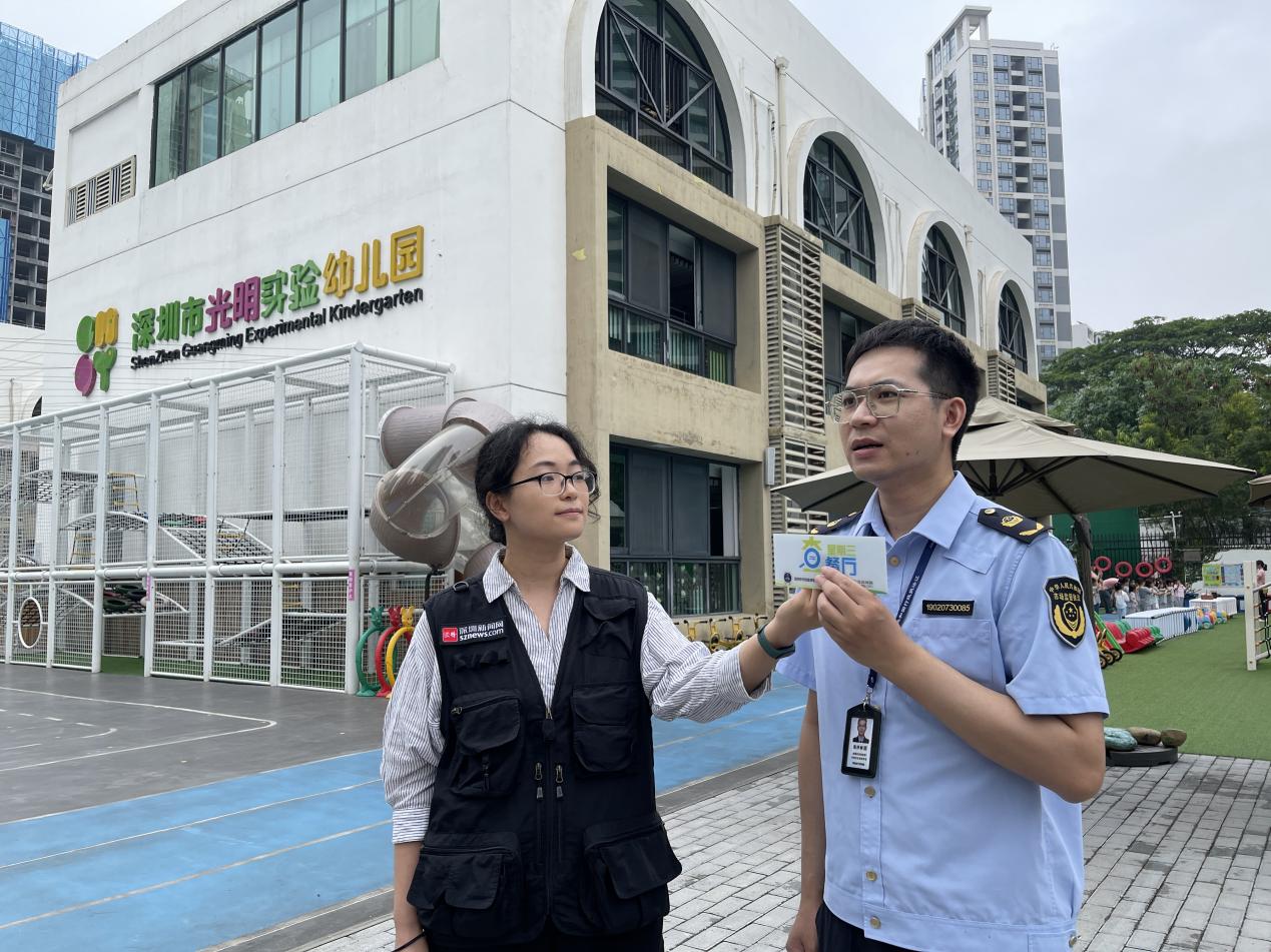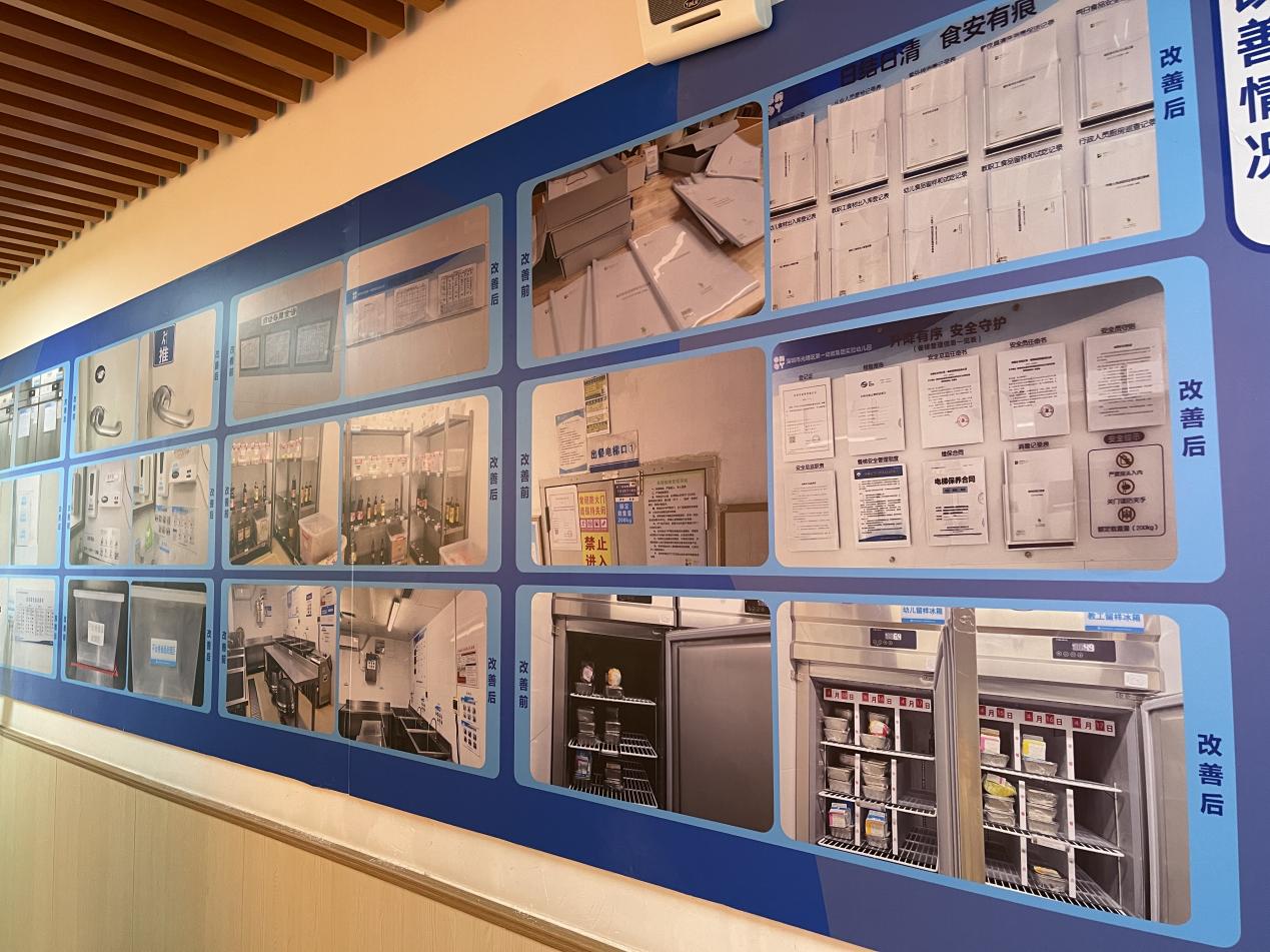 陈泽楠介绍,深圳市市场监管局光明监管局与光明区教育局合作,联合实施了“光明区校园A级食堂‘焕颜迭代’计划”,在光明区40所学校食堂实行6S精细化管理体系,即整理、整顿、清扫、清洁、素养、安全,由市场监管局执法人员对各学校管理人员进行培训,让校园食堂管理人员深入了解6S管理要领,并对日常校园食堂管理进行系统化改善、升级。“本次行动来到的光明实验幼儿园食堂就是按照6S管理体系建设的样板示范学校,刚刚在后厨看到的色标管理、食品安全可视化管理标签、留样冰箱分格等都是这套体系的具体体现,虽然学校已经建成超过十年,但食堂内部管理、维护依然十分到位,再加上6S管理体系的辅助,相信孩子们的校园食品安全能得到充分保障。”陈泽楠说道。