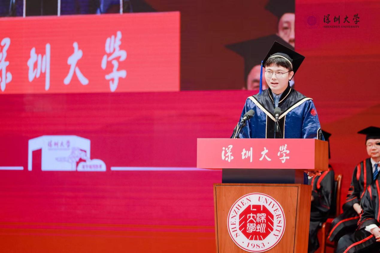 来自传播学院的本科毕业生朱梓鹏作为毕业生代表发言。临别之际,他重新捡拾起心中的“意义地图”,深情回顾了每一位深大人在荔园的“意义探险”。