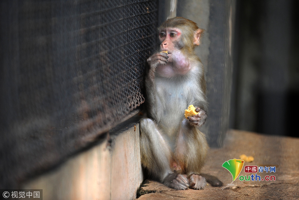 2016年9月15日,武汉动物园,猕猴品尝特制月饼。