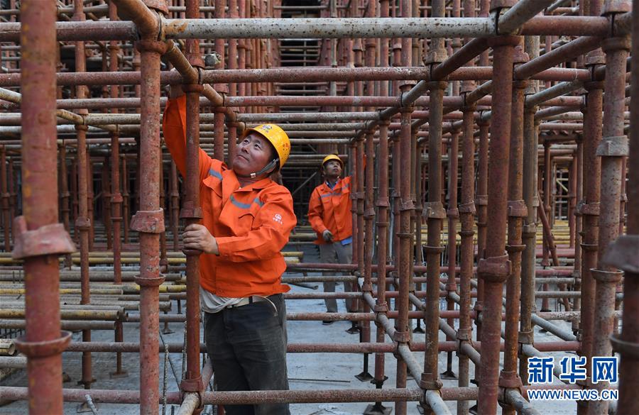 10月1日,中建三局三公司建筑工人在南京世茂外滩新城项目现场施工。当日是国庆节,许多劳动者坚守在工作一线,在岗位上度过节日。新华社记者李响摄
